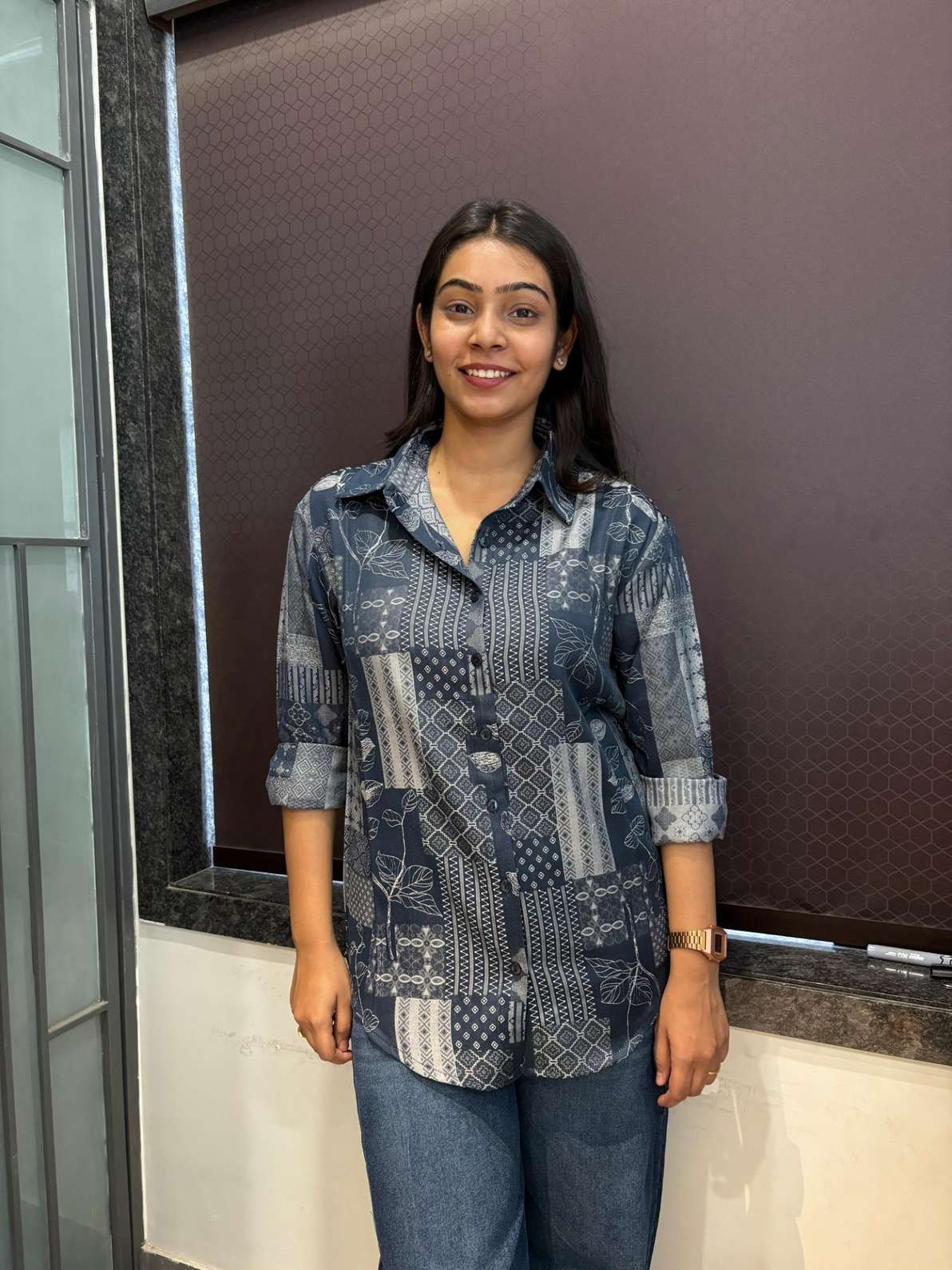 Self design solid shirt