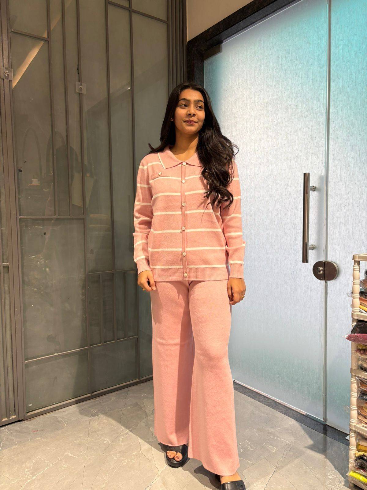 This woolen stripe co-ord set is designed for everyday comfort with a stylish edge. Featuring a soft, cozy feel and a relaxed fit, it’s perfect for daily wear—whether you’re stepping out or lounging in effortless style.