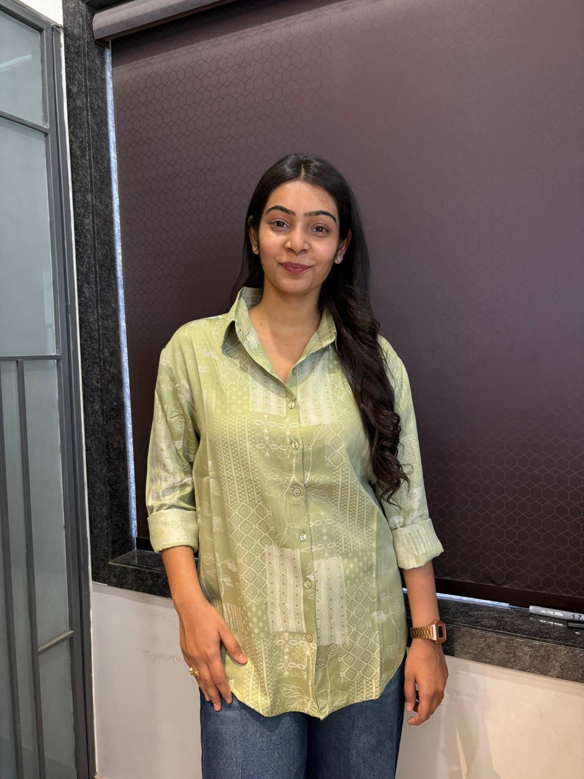 Self design solid shirt