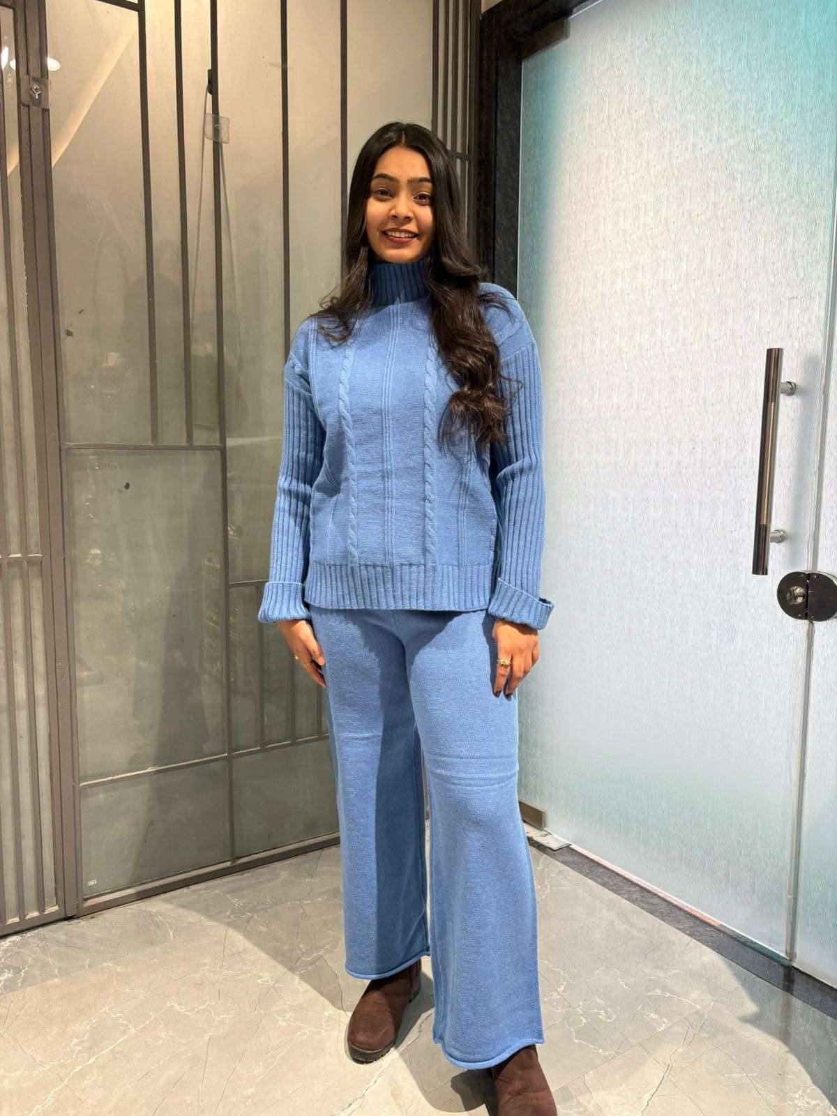 Stay warm in effortless style with this woolen high-neck co-ord set. Designed in a comfortable one-size fit, it offers a cozy feel with a smart, minimal look—perfect for everyday winter wear or relaxed outings.